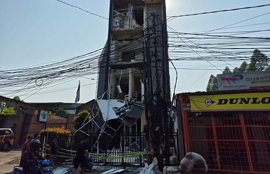 Sementara masih dalam foto yang sama, terlihat Polisi sudah berada di lokasi. Garis kuning khas Polisi pun sudah terpasang di depan gedung. (*)